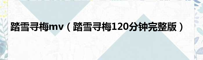 踏雪寻梅mv(踏雪寻梅120分钟完整版)
