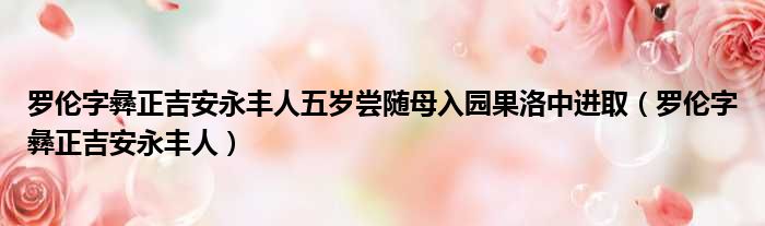 罗伦字彝正吉安永丰人五岁尝随母入园果洛中进取(罗伦字彝正吉安永丰人)