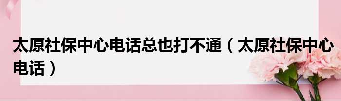 导读 大家好,今天小六子来为大家解答以下的问题,关于太原社保中心电话总也打不通,太原社保中心电话这个很多人还不知道,现在让我们一起来看看