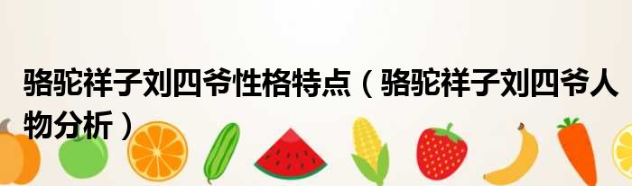 导读 大家好,今天小六子来为大家解答以下的问题,关于骆驼祥子刘四爷性格特点,骆驼祥子刘四爷人物分析这个很多人还不知道,现在让我们一起来看