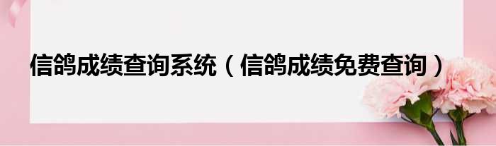 大家好,今天小六子来为大家解答以下的问题,关于信鸽成绩查询系统,信鸽成绩免费查询这个很多人还不知道,现在让我们一起来看看吧!
