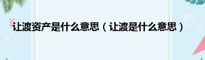 导读 大家好,今天小六子来为大家解答以下的问题,关于让渡资产是什么意思,让渡是什么意思这个很多人还不知道,现在让我们一起来看看吧!1、所谓