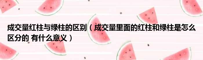 导读 大家好,今天小六子来为大家解答以下的问题,关于成交量红柱与绿柱的区别,成交量里面的红柱和绿柱是怎么区分的 有什么意义这个很多人还不