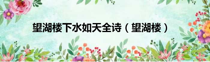 望湖楼下水如天全诗(望湖楼)