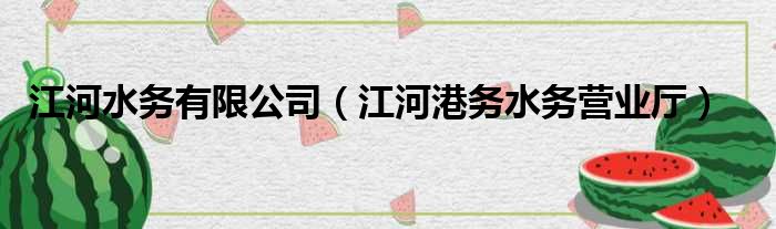 大家好,今天小六子来为大家解答以下的问题,关于江河水务有限公司,江河港务水务营业厅这个很多人还不知道,现在让我们一起来看看吧!