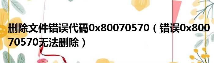 删除文件错误代码0x80070570(错误0x80070570无法删除)