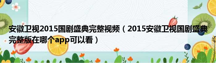 大家好,今天小六子来为大家解答以下的问题,关于安徽卫视2015国剧盛典完整视频,2015安徽卫视国剧盛典完整版在哪个app可以看这个很多人还不知道,现在让我们一起来看看吧!