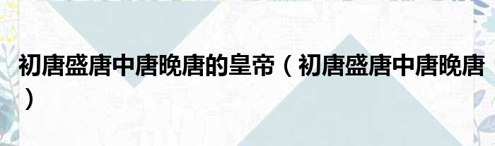 初唐盛唐中唐晚唐的皇帝(初唐盛唐中唐晚唐)