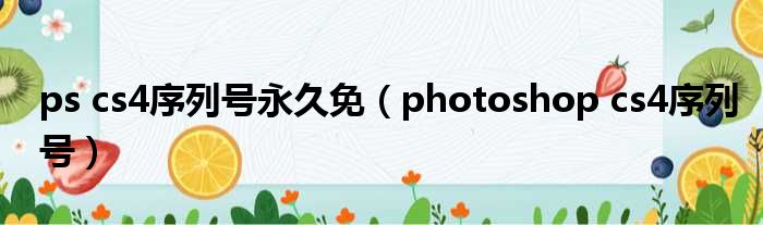 大家好,今天小六子来为大家解答以下的问题,关于ps cs4序列号永久免,photoshop cs4序列号这个很多人还不知道,现在让我们一起来看看吧!