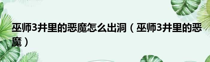 巫师3井里的恶魔怎么出洞(巫师3井里的恶魔)