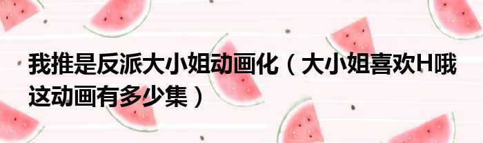 导读 大家好,今天小六子来为大家解答以下的问题,关于我推是反派大小姐动画化,大小姐喜欢H哦 这动画有多少集这个很多人还不知道,现在让我们一
