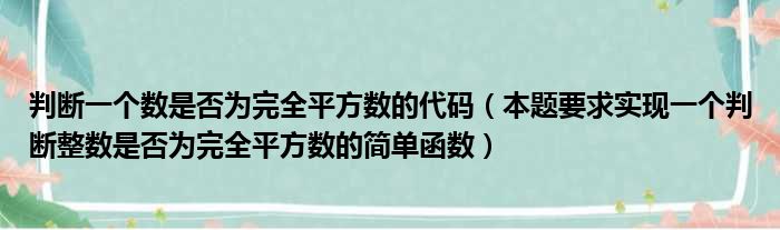 判断一个数是否为完全平方数的代码(本题要求实现一个判断整数是否为完全平方数的简单函数)