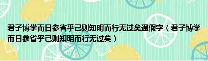 君子博学而日参省乎己则知明而行无过矣通假字(君子博学而日参省乎己则知明而行无过矣)