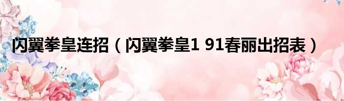 导读 大家好,今天小六子来为大家解答以下的问题,关于闪翼拳皇连招,闪翼拳皇1 91春丽出招表这个很多人还不知道,现在让我们一起来看看吧!1、