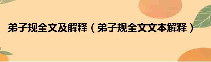 1、弟子规 圣人训 首孝悌 次谨信【解释】弟子规,是圣人的教诲。