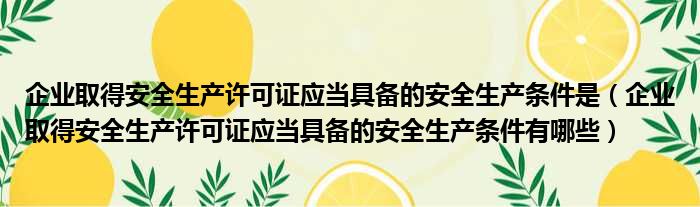 企业取得安全生产许可证应当具备的安全生产条件是(企业取得安全生产许可证应当具备的安全生产条件有哪些)