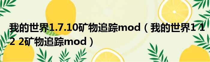 我的世界1.7.10矿物追踪mod(我的世界1 12 2矿物追踪mod)