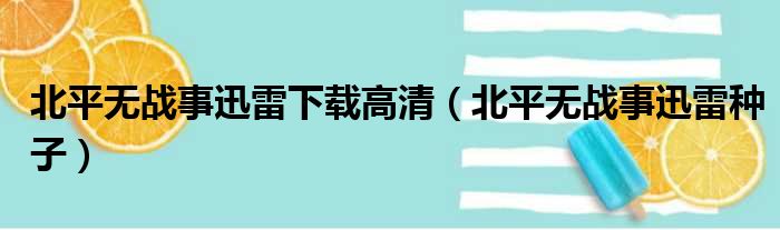 导读 大家好,今天小六子来为大家解答以下的问题,关于北平无战事迅雷下载高清,北平无战事迅雷种子这个很多人还不知道,现在让我们一起来看看吧