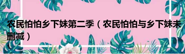 导读 大家好,今天小六子来为大家解答以下的问题,关于农民怕怕乡下妹第二季,农民怕怕与乡下妹未删减这个很多人还不知道,现在让我们一起来看看