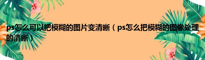 ps怎么可以把模糊的图片变清晰(ps怎么把模糊的图像处理的清晰)