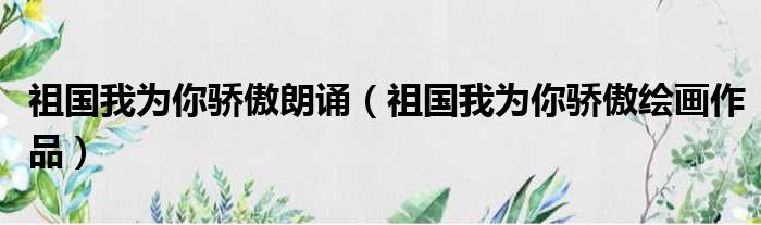 导读 大家好,今天小六子来为大家解答以下的问题,关于祖国我为你骄傲朗诵,祖国我为你骄傲绘画作品这个很多人还不知道,现在让我们一起来看看吧