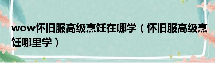wow怀旧服高级烹饪在哪学(怀旧服高级烹饪哪里学)