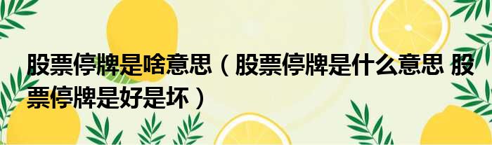 股票停牌是啥意思(股票停牌是什么意思 股票停牌是好是坏)