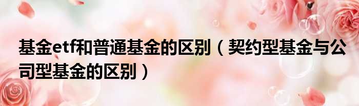 导读 大家好,今天小六子来为大家解答以下的问题,关于基金etf和普通基金的区别,契约型基金与公司型基金的区别这个很多人还不知道,现在让我们一