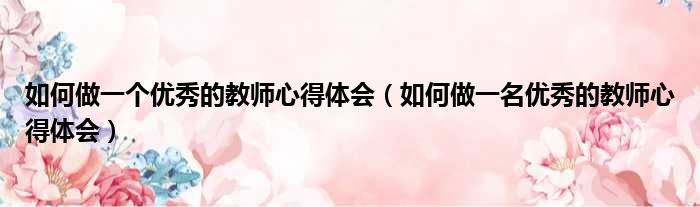 如何做一个优秀的教师心得体会(如何做一名优秀的教师心得体会)