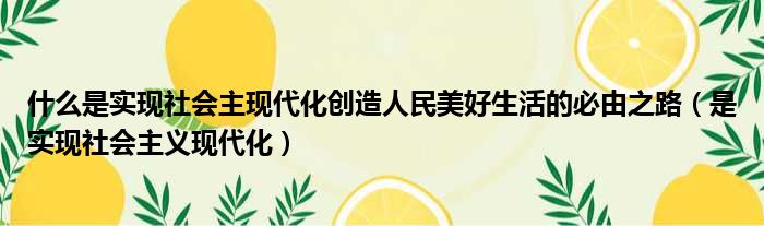 什么是实现社会主现代化创造人民美好生活的必由之路(是实现社会主义现代化)