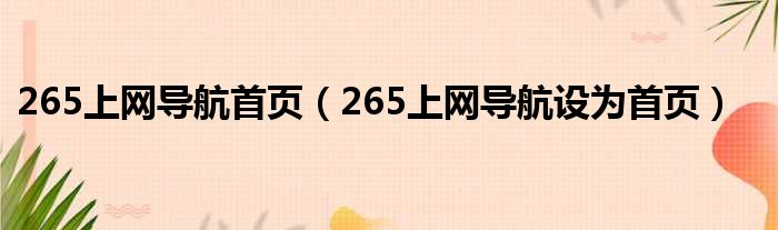 大家好,今天小六子来为大家解答以下的问题,关于265上网导航首页,265上网导航设为首页这个很多人还不知道,现在让我们一起来看看吧!