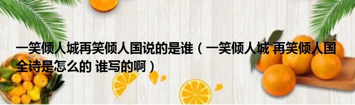 一笑倾人城再笑倾人国说的是谁(一笑倾人城 再笑倾人国 全诗是怎么的 谁写的啊)