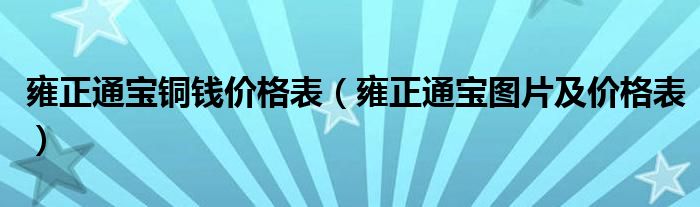 导读 大家好,今天小六子来为大家解答以下的问题,关于雍正通宝铜钱价格表,雍正通宝图片及价格表这个很多人还不知道,现在让我们一起来看看吧!1