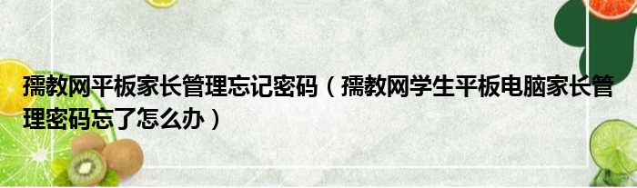 孺教网平板家长管理忘记密码(孺教网学生平板电脑家长管理密码忘了怎么办)