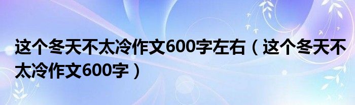 这个冬天不太冷作文600字左右(这个冬天不太冷作文600字)