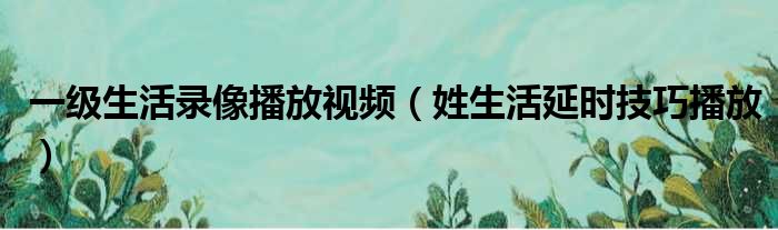 一级生活录像播放视频(姓生活延时技巧播放)