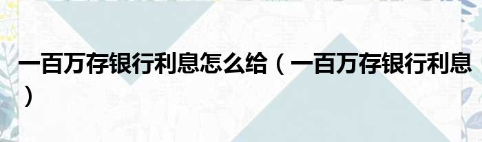 大家好,今天小六子来为大家解答以下的问题,关于一百万存银行利息怎么给,一百万存银行利息这个很多人还不知道,现在让我们一起来看看吧!