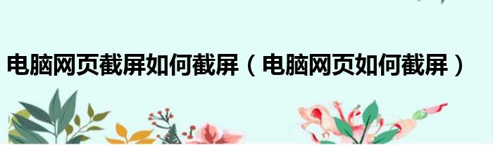 电脑网页截屏如何截屏(电脑网页如何截屏)