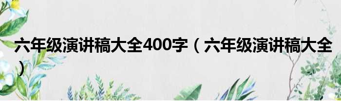 六年级演讲稿大全400字(六年级演讲稿大全)