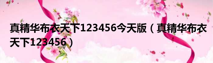 导读 大家好,今天小六子来为大家解答以下的问题,关于真精华布衣天下123456今天版,真精华布衣天下123456这个很多人还不知道,现在让我们一起来
