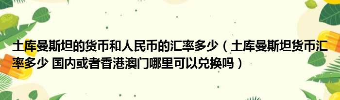 土库曼斯坦的货币和人民币的汇率多少(土库曼斯坦货币汇率多少 国内或者香港澳门哪里可以兑换吗)