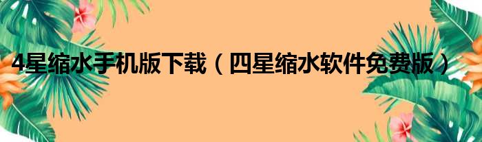 导读 大家好,今天小六子来为大家解答以下的问题,关于4星缩水手机版下载,四星缩水软件免费版这个很多人还不知道,现在让我们一起来看看吧!1、