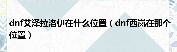 dnf艾泽拉洛伊在什么位置(dnf西岚在那个位置)