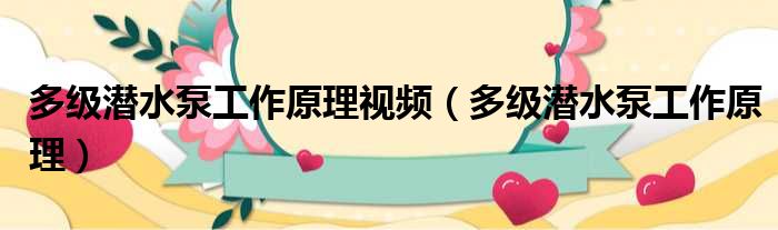 多级潜水泵工作原理视频(多级潜水泵工作原理)