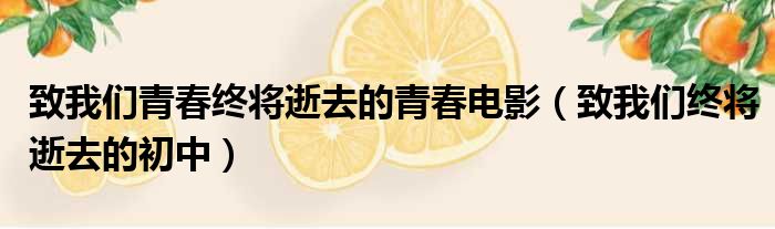 致我们青春终将逝去的青春电影(致我们终将逝去的初中)
