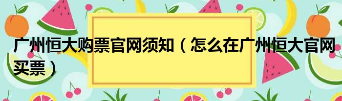广州恒大购票官网须知(怎么在广州恒大官网买票)