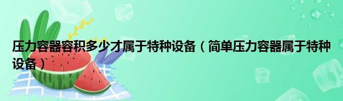 压力容器容积多少才属于特种设备(简单压力容器属于特种设备)