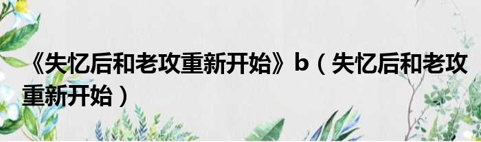 导读 大家好,今天小六子来为大家解答以下的问题,关于《失忆后和老攻重新开始》b,失忆后和老攻重新开始这个很多人还不知道,现在让我们一起来看