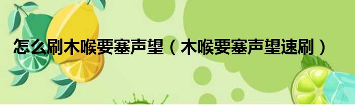 怎么刷木喉要塞声望(木喉要塞声望速刷)