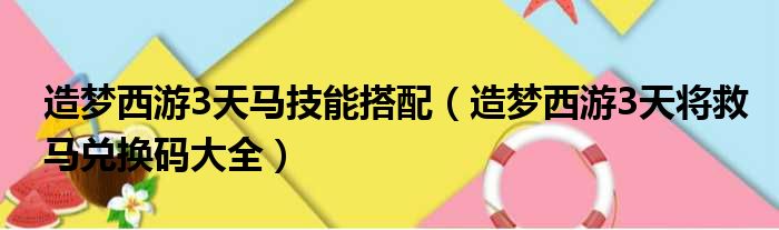 导读 大家好,今天小六子来为大家解答以下的问题,关于造梦西游3天马技能搭配,造梦西游3天将救马兑换码大全这个很多人还不知道,现在让我们一起